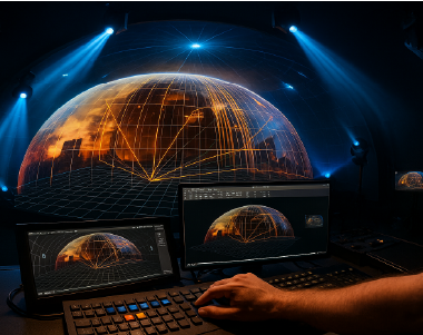 ORBIT専用のリアルタイムメディアサーバーは、レンダリング、照明、音響、映像を同期制御し、効率的に没入型空間を創出いたします。これにより、ORBITはLEDドームシアターとしての用途にとどまらず、目的に応じた多様な空間演出に柔軟に対応いたします。